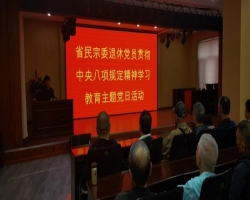 6月17日,省民宗委第一党支部召开深入贯彻中央八项规定精神学习教育学习会,省委统战部副部长,省民宗委主任、党组书记沈大为参加。 会上,传达学习《党政机关例行节约反对浪费条例》和省委开展深入贯彻中