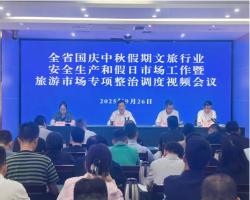 9月26日,四川省文化和旅游厅组织召开全省文旅行业安全生产和假日市场工作暨旅游市场集中整治调度视频会议。文化和旅游厅党组书记、厅长、厅安委会主任陈光浩出席会议并讲话,要求部门联动、协同发力,抓牢文