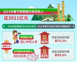 文化和旅游部坚决贯彻落实党中央、国务院决策部署,节前召开全国文化和旅游市场安全工作视频会议,进行周密部署,着力丰富市场供给,精准抓好疫情防控,严守安全底线,强化综合执法,春节全国文化和旅游假日市场总体平稳有序。综合各地文化和旅游部门、通讯运营商、线上旅行服务商的数据,经文化和旅游部数据中心测算,春节假期七天,全国国内旅游出游合计2.56亿人次,同比增长15.7%,恢复至疫前同期的75.3%。实...